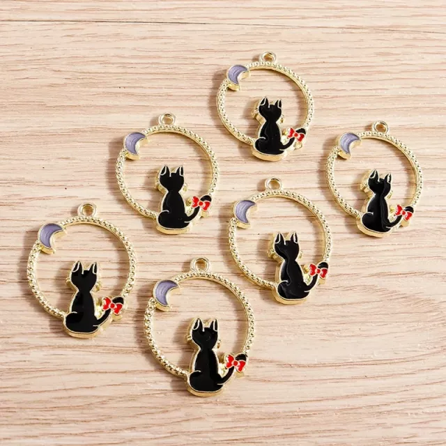 10pcs Enamel Cat & Moon Charms for Jewelry Making – 0.87×1.1in