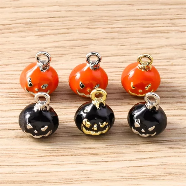 Get into the festive spirit with these adorable 5pcs Mini Halloween Pumpkin Charms, perfect for turning your jewelry designs into something delightfully spooky! These tiny 0.35 x 0.47 inch (9x12mm) enamel alloy pumpkin charms are just what your Halloween-inspired DIY projects need to stand out. With their vibrant orange enamel and finely crafted details, they bring a whimsical yet festive touch to any creation.